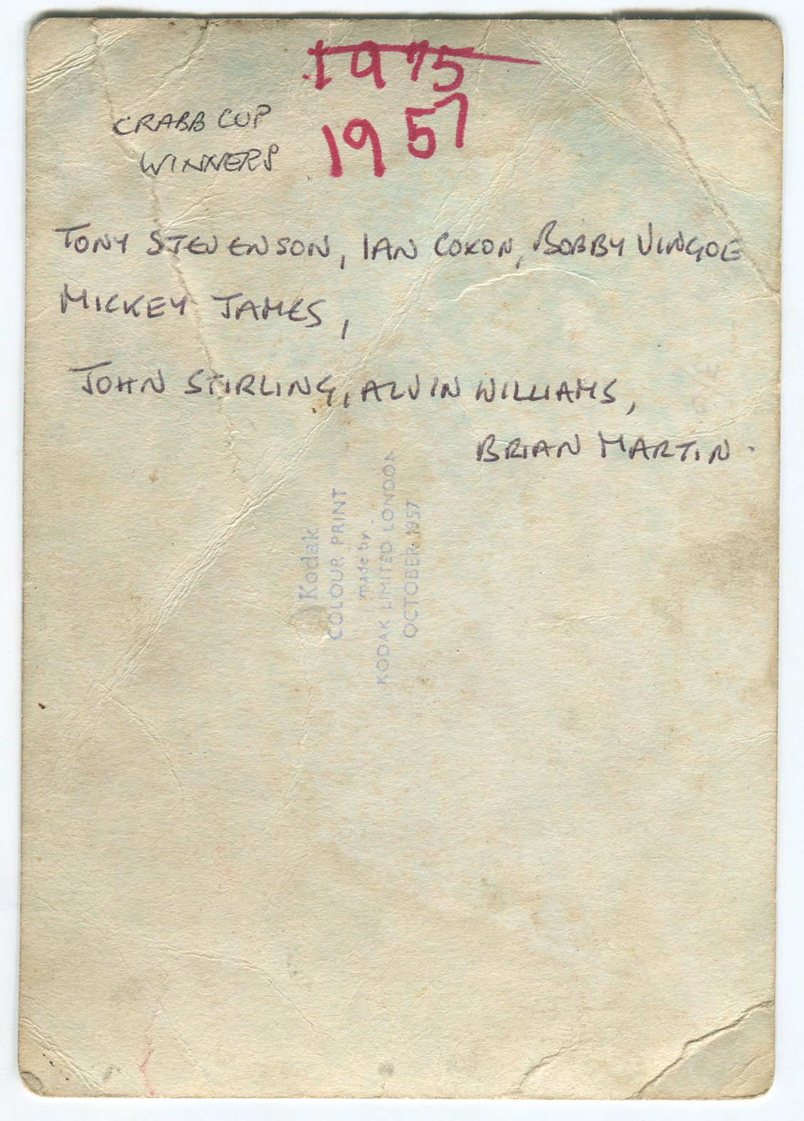 Back row: Tony Stevenson, Ian Coxen, Bobby Vingoe, Mickey James.