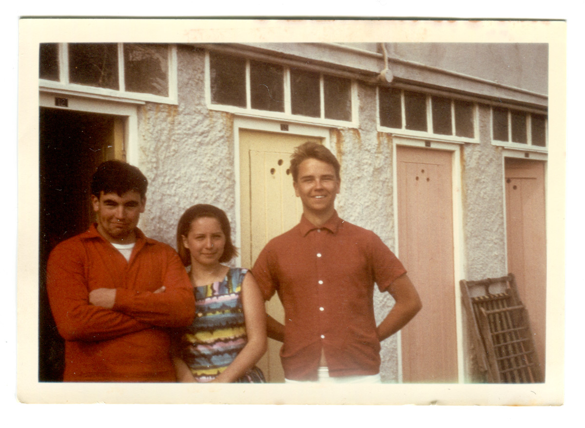 Three friends outside the pool changing rooms.
