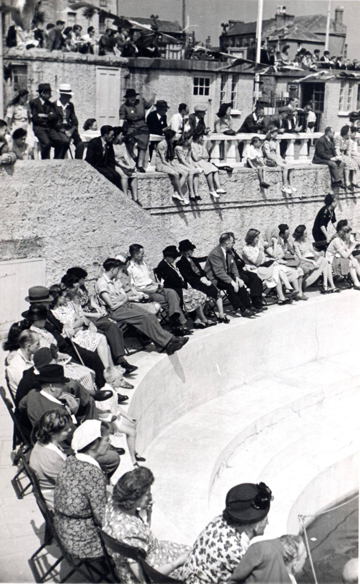 The crowds here are clearly watching an event - but what is it they are looking at so intently? Water polo matches and swimming galas at the pool attracted large crowds.