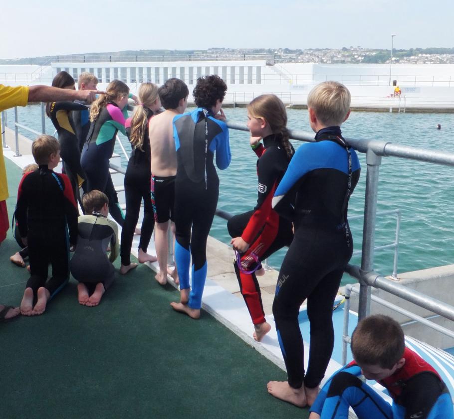 In June, artist and project director Jane Bailey worked with Class 1 at Trythall School on an immersive research project including a swim in the pool and some underwater photography. The children started by creating a fantastic list of questions about the pool. After their pool swim the children came back the next day for a talk from Angie Butler of 'Friends of Jubilee Pool' and did their own detective work about the pool's past, each annotating an archive photo of the pool with observations and questions. Back in the classroom they did online research and added this to the larger scale versions of their research boards. Some of this research work will be shown as part of the Jubilee Pool timeline in the show at the Exchange Gallery.