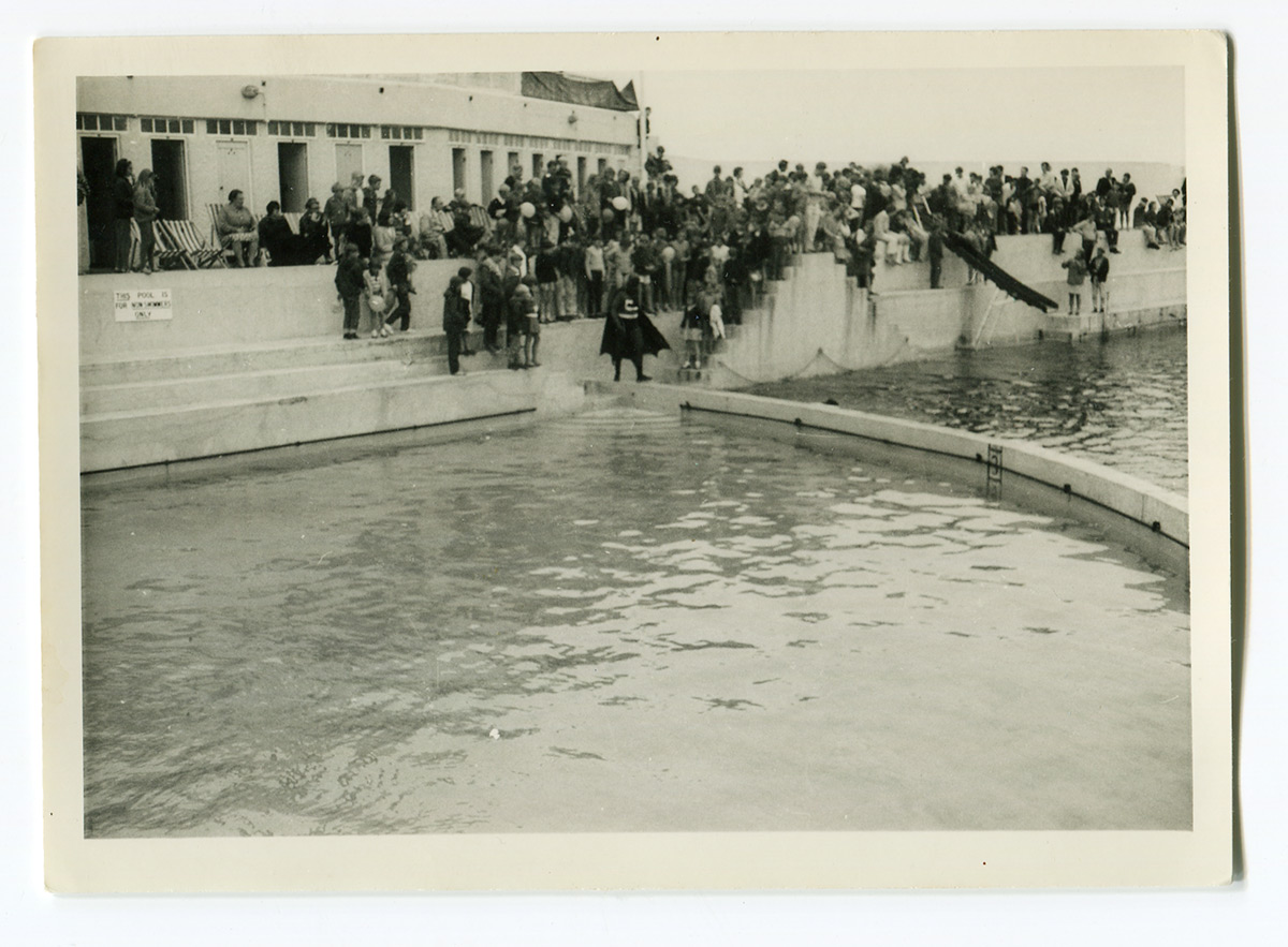 Neptune was also Alvin's idea, based on the maritime Crossing-the-Line ceremony. When sailors on big ships crossed the equator for the first time, they would go through the ceremony (e.g. people would be ducked in water, shaved etc). This was replicated at Jubilee Pool gala near the end of the season and became part of eagerly awaited yearly entertainment. Divers were brought from out of county to do demonstrations.
