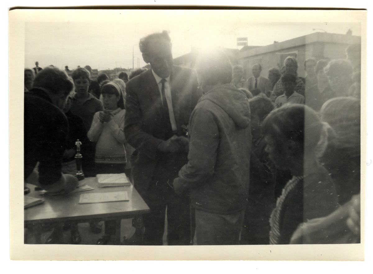 A long distance swimming award is presentated to Liz Nicholls by George Richards.