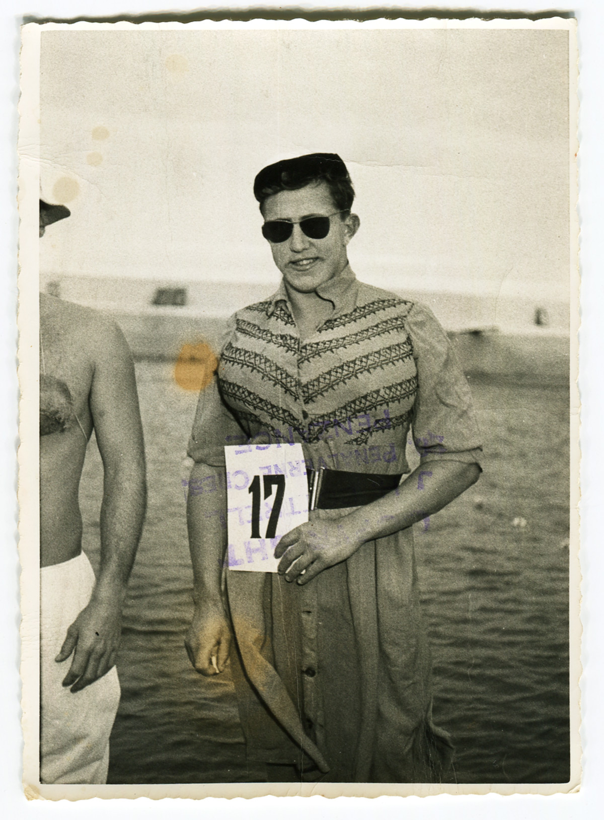 The men's mock beauty parades were a feature of galas at Jubilee Pool. Brian Monkton in the beauty parade.